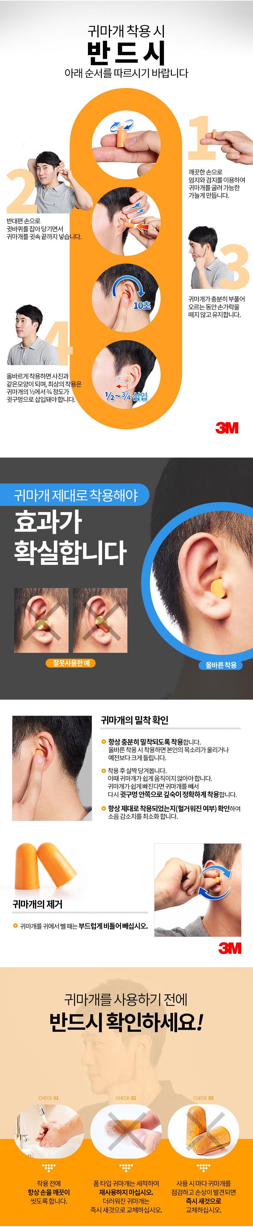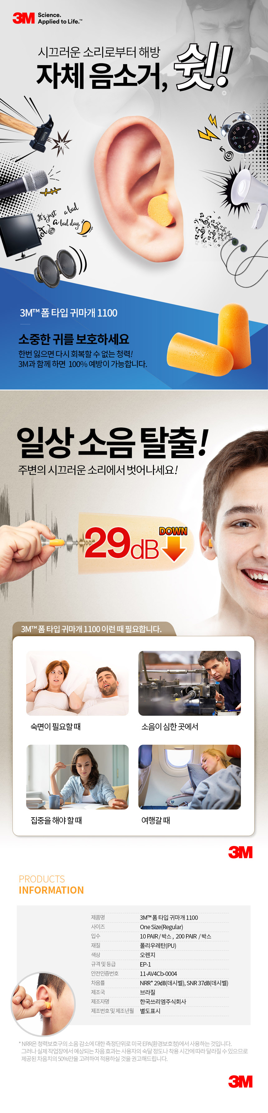 3M 1110 귀마개 (끈O 폼타입) 청력보호구