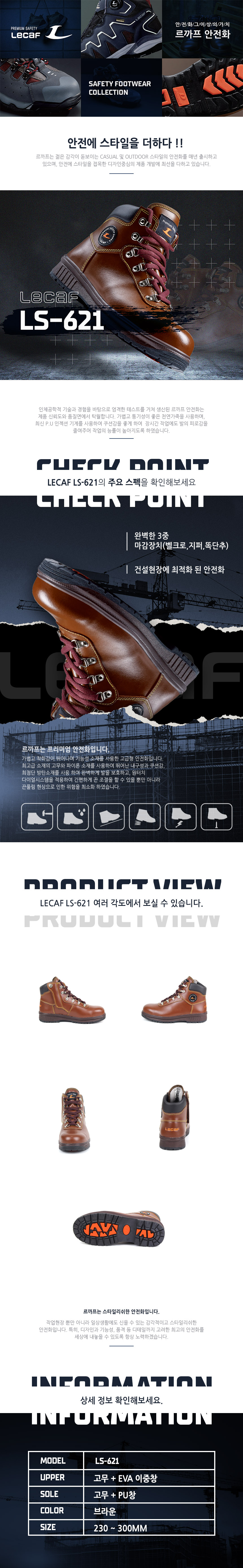 LECAF 르까프 LS-621 / 6인치 안전화 / 건설용 작업화