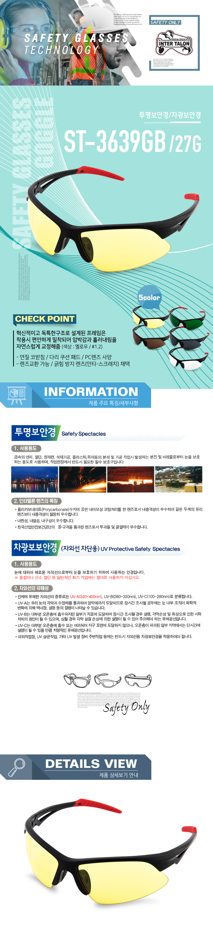 인터텔론 차광 보안경 ST-3639GB (옐로우) #1.2