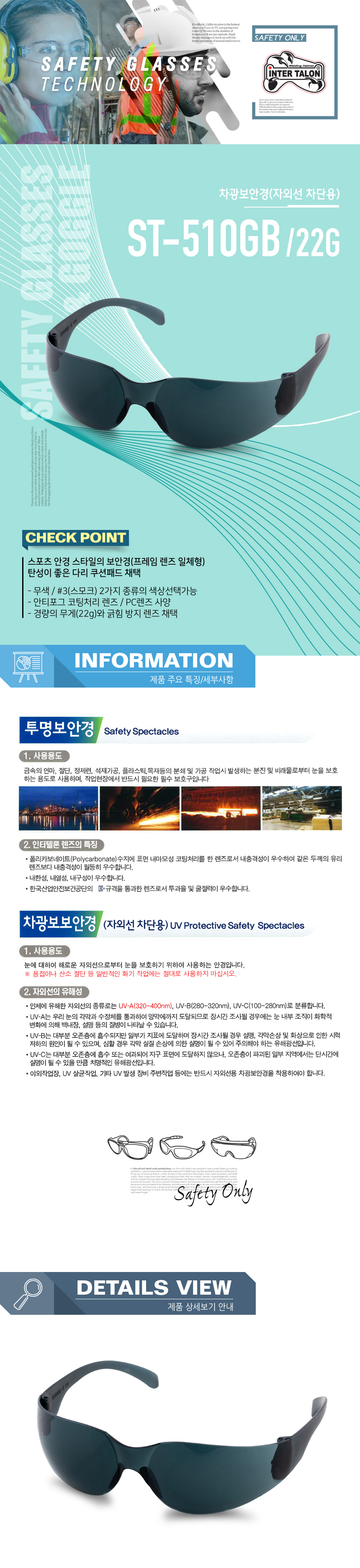 인터텔론 차광 보안경 ST-510GB (스모크)