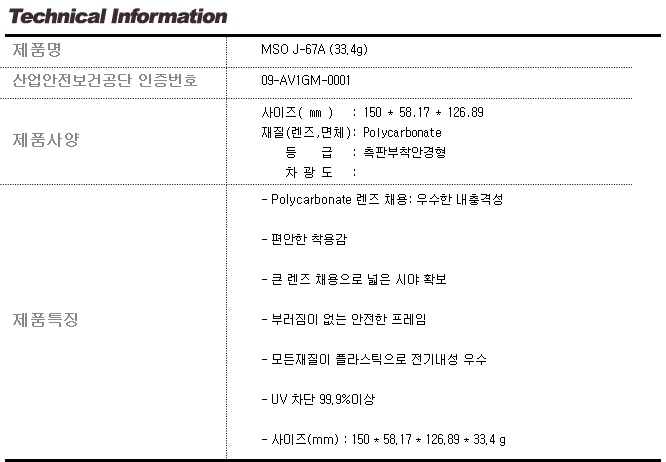 명신광학 MSO J-67A 보안경 안경식