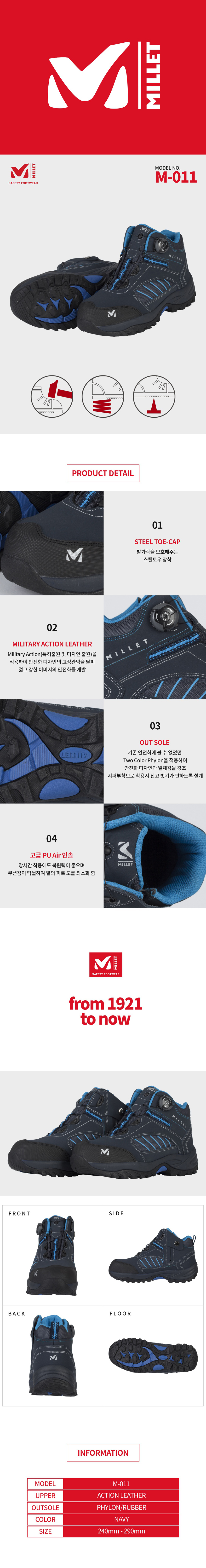 밀레 M-011 / 6인치 안전화 / 중작업용 안전화