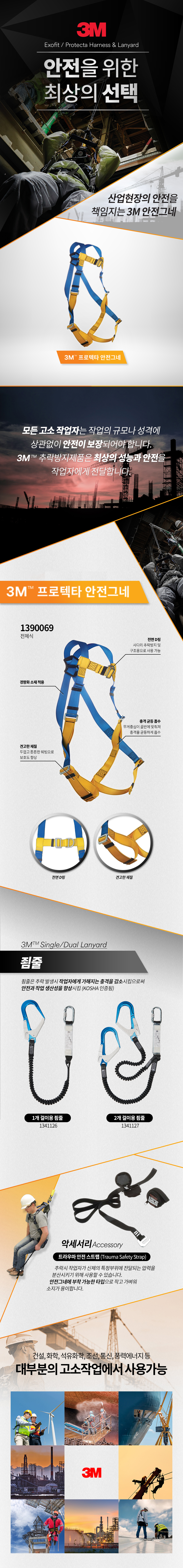 3M 아시안핏 프로텍타 안전그네 1개 걸이용 죔줄 / 3M 전체식 벨트 싱글