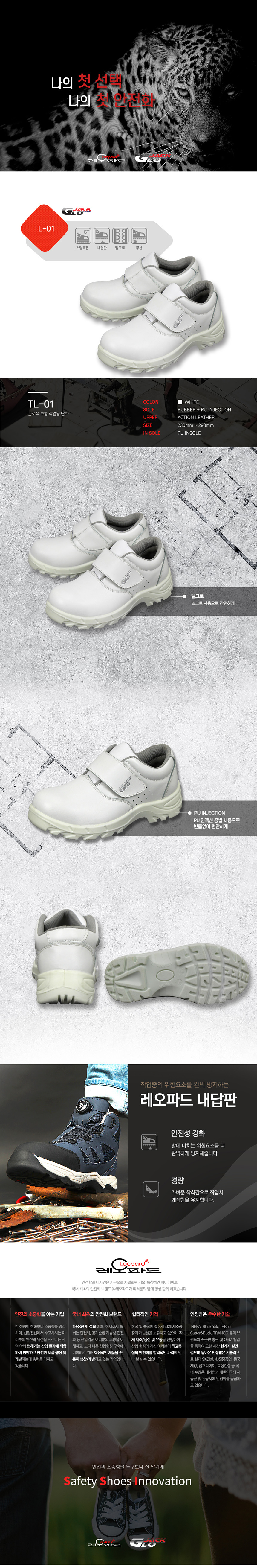 글로잭 안전화 TL-01 백색 4인치 안전화